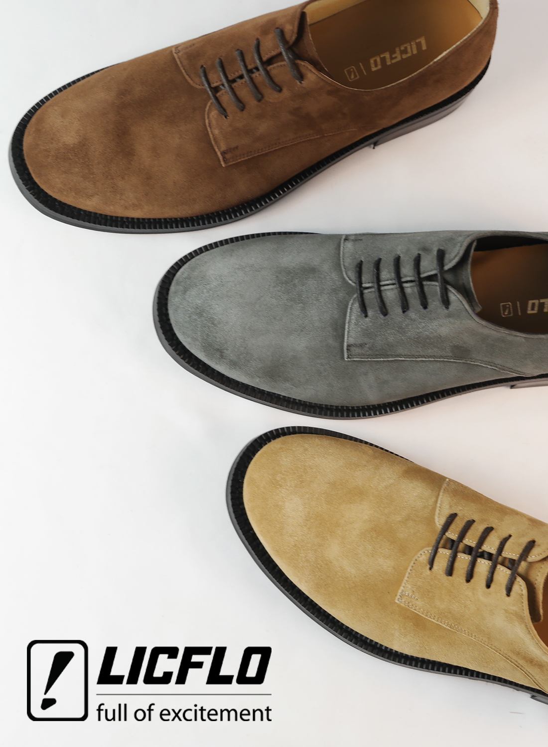 스웨이드 가죽을 사용한 플레인 더비슈즈입니다.