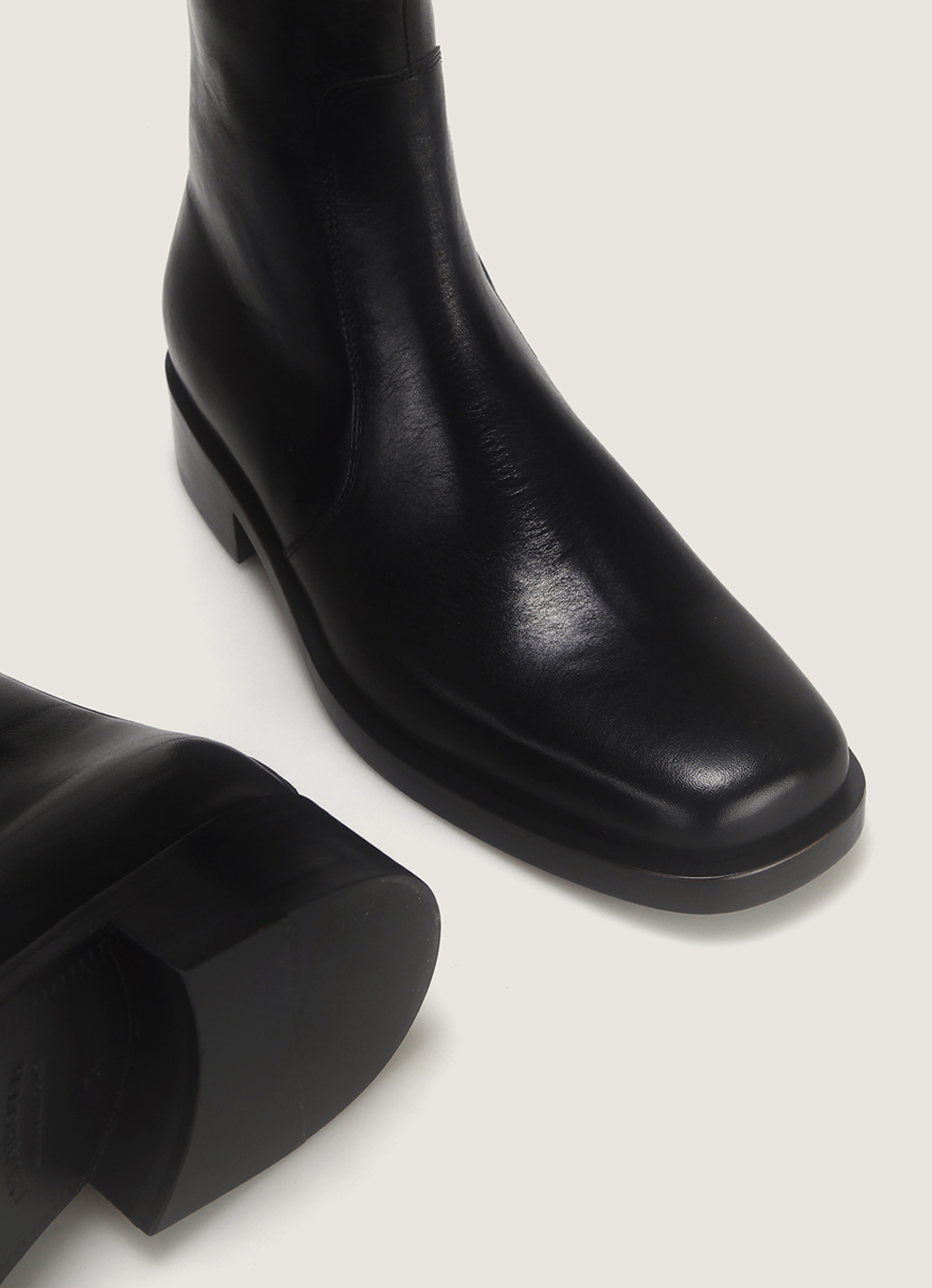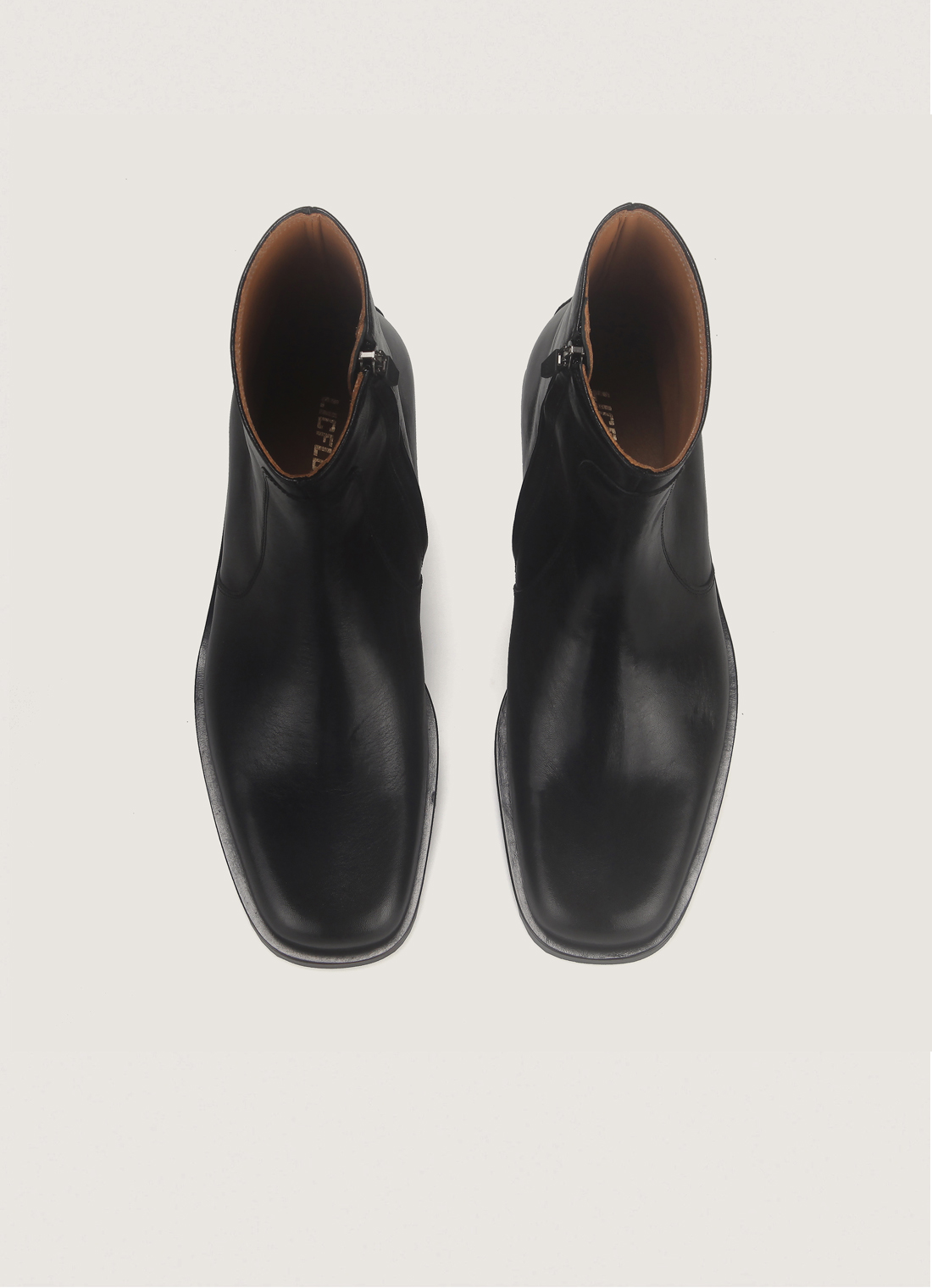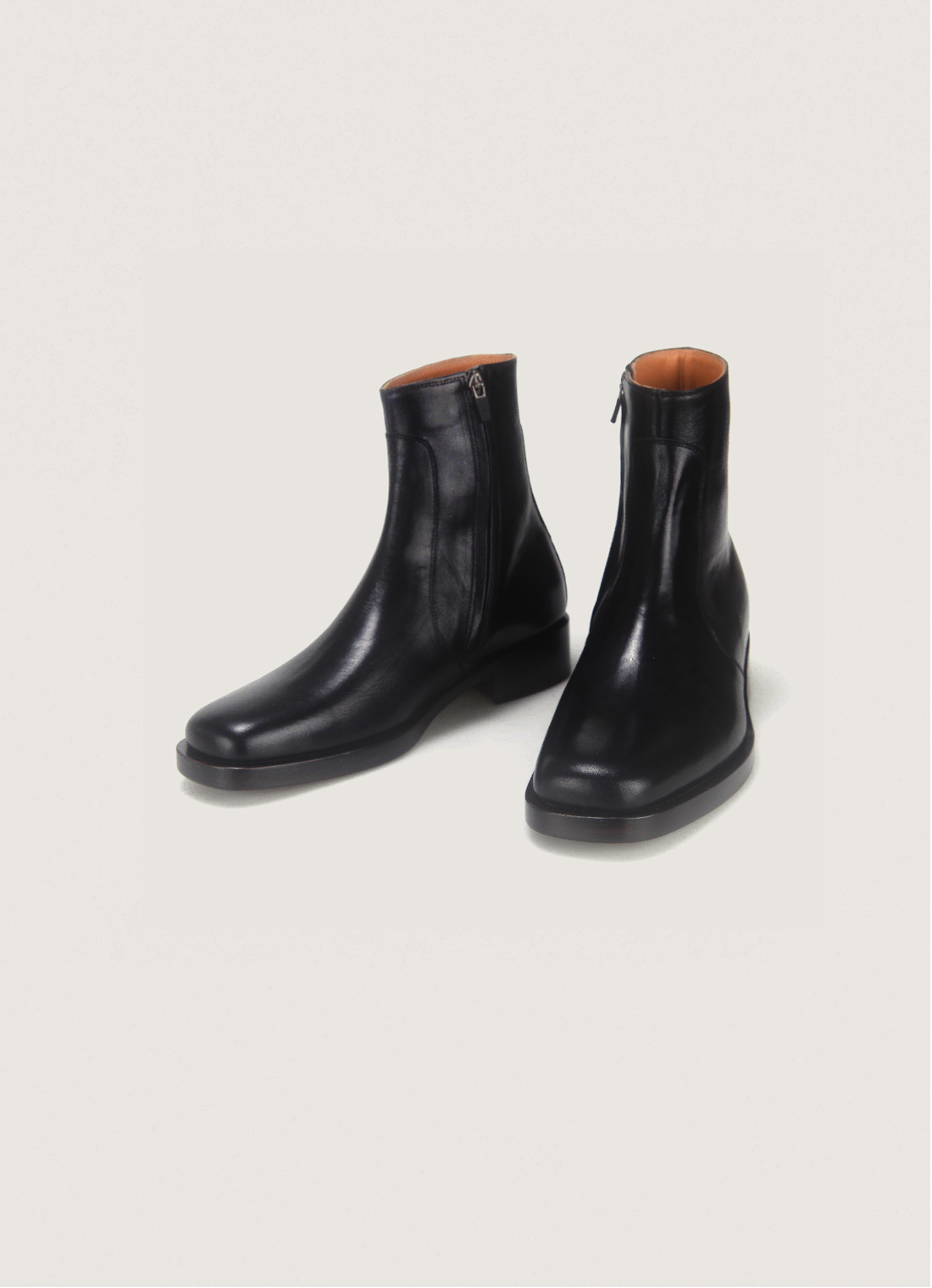 담아낸 세미스퀘어토 실루엣의 앵클부츠입니다.