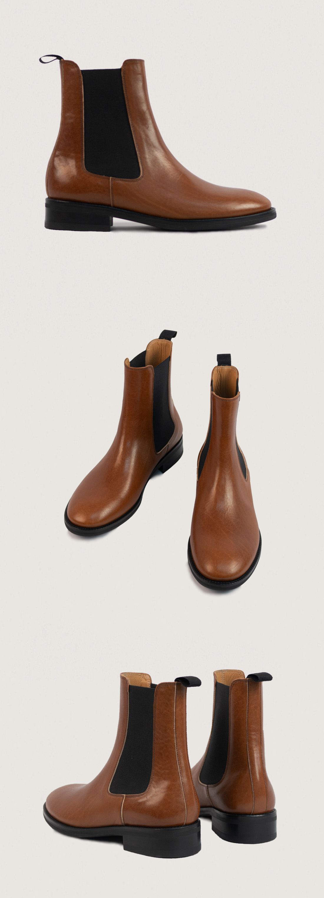 와이드한 토룸, 매끄러운 라인감의 첼시부츠입니다.